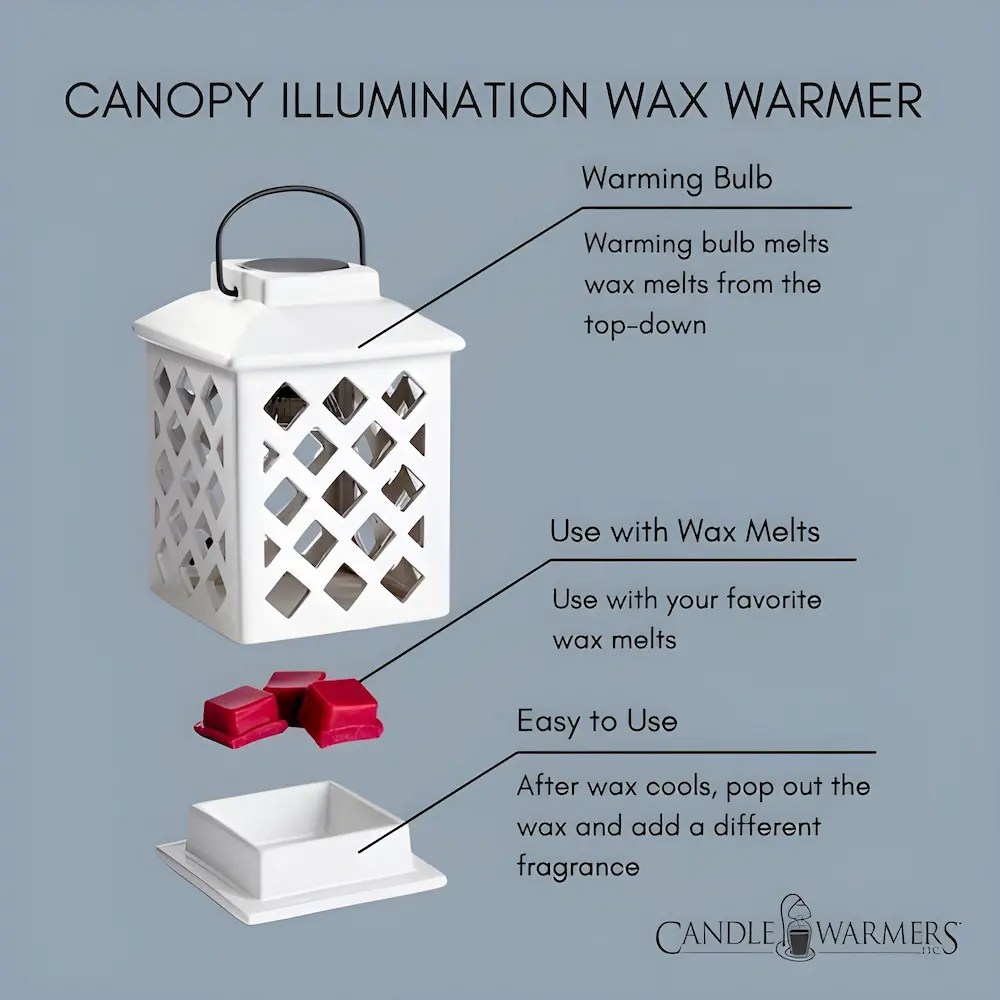 Al encenderlo, su luz cálida proyecta un efecto decorativo mientras derrite ceras aromáticas en la parte superior.