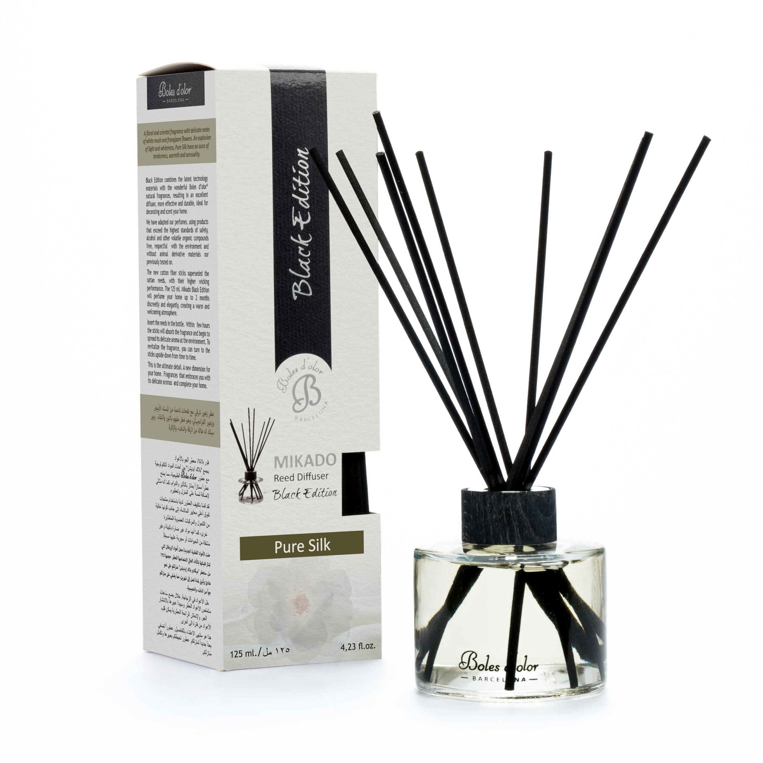 La nueva línea de Mikado Black Edition combina materiales de nueva tecnología con las maravillosas fragancias naturales de Boles d’olor, resultando en un magnífico complemento, más eficaz y duradero, ideal para decorar y perfumar tu hogar.