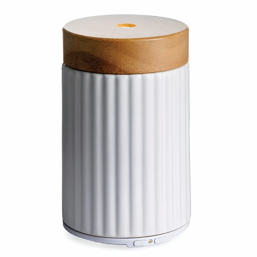 El Difusor Eléctrico Wood & Ceramic de la marca Airomé (USA) combina la pureza de la cerámica blanca con la calidez natural de la madera. Su diseño minimalista y elegante se integra fácilmente en cualquier estilo de decoración, convirtiéndose en un detalle funcional y decorativo a la vez.
