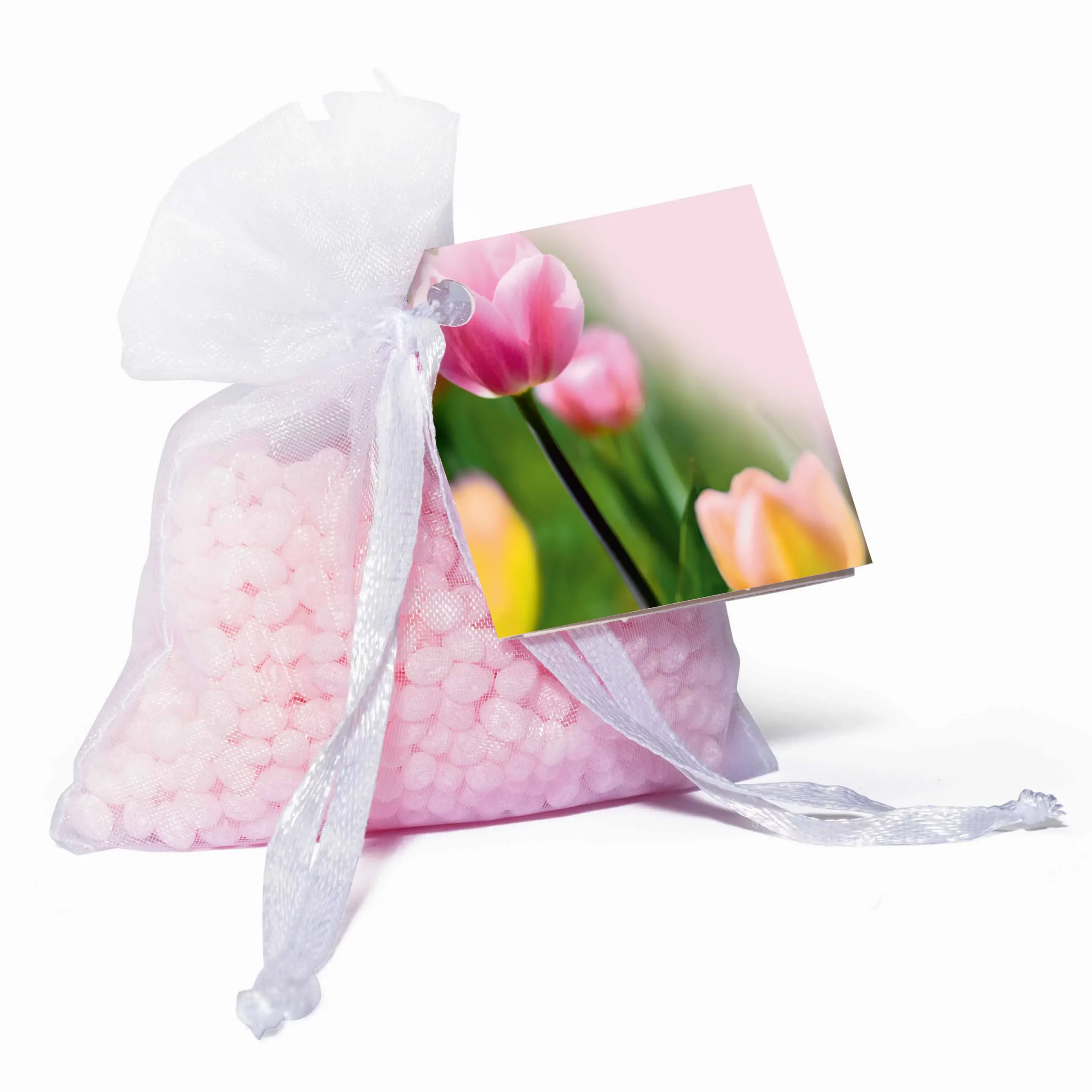 Las Mini-Resinas perfumadas de Ambients son perlas aromáticas presentadas en un saquito de tul. La tecnología EVA permite que la fragancia en forma de perlas se libere gradualmente durante muchísimo tiempo. Son perfectas para perfumar la ropa en cajones.