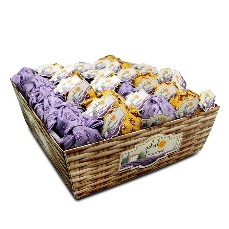Saquito de algodón con diseño alegre, típicamente provenzal, relleno de una mezcla especial de flores secas y perlitas de resina perfumadas.